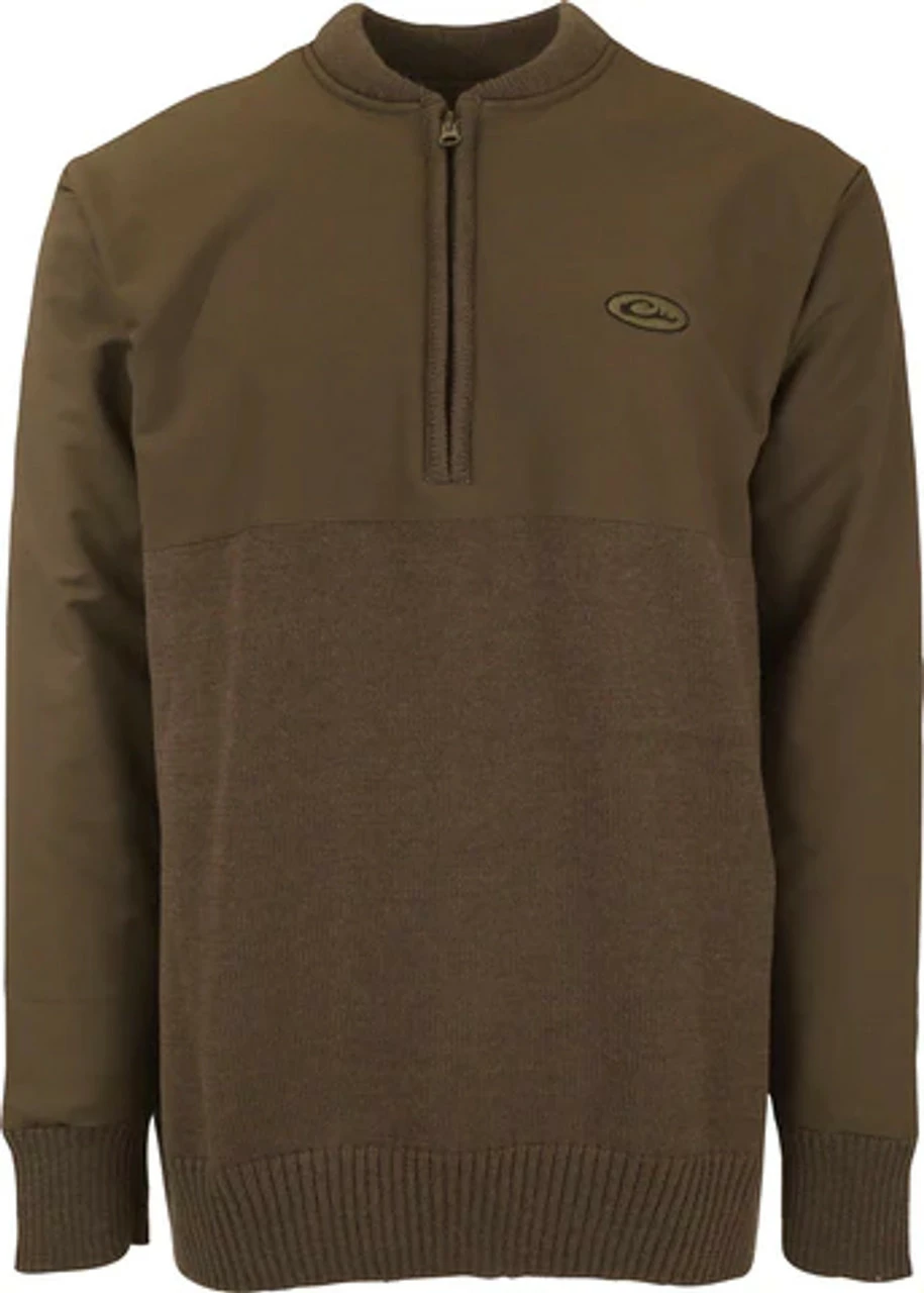Old school collides with new school in this awesome sweater that performs as well as it looks. TheΒ 650 gram knitted 100% wool lower is incredibly warm yet highly breathable while the upper has anΒ additional layer of polyester treated with DWR for protection against the elements.Β Equipped with a quarter zip for additional ventilation.