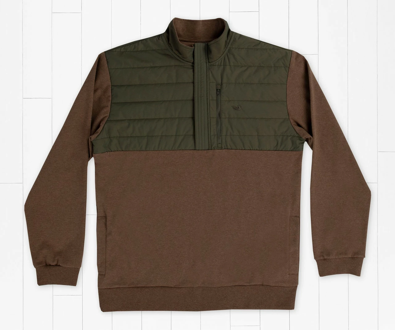 Combat the cold in style inΒ the Richardson Stretch Heather Pullover. With a quilted, water-resistant yoke shell on the front and back, youβll stayΒ comfortable and confident, no matter the weather. The water-treated utility chest pocket and two front pockets that are lined with nylon will keep all of your essentials safeΒ and secure. Crafted with durable cotton-poly blended fabric and YKK zipper hardware, this 1/4 zip was made for the true outdoorsman or woman.