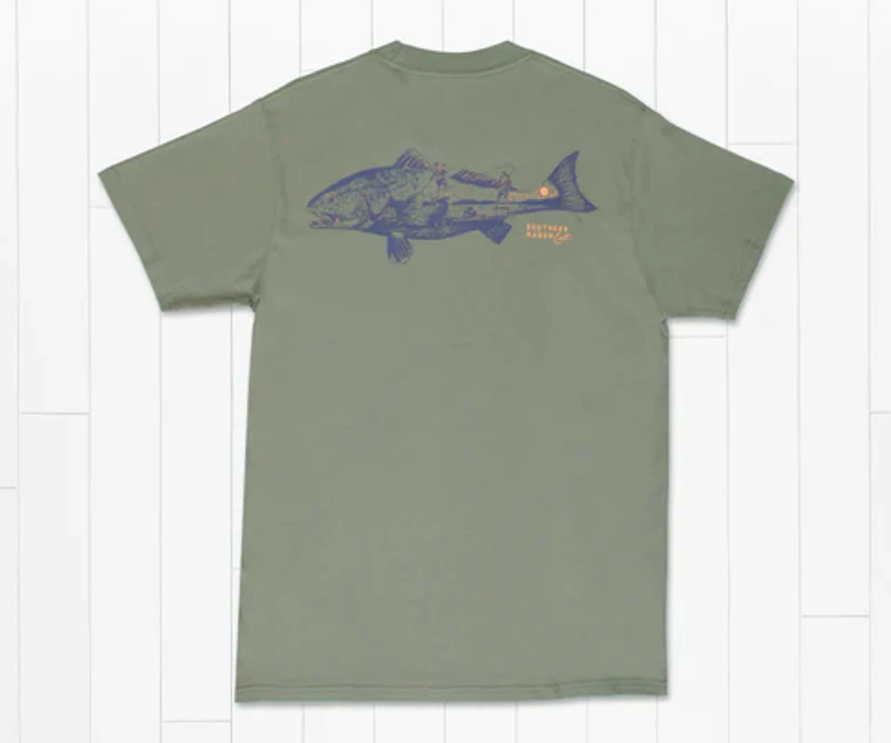Cast a line in the new SUNSET SPOTS short sleeve tee. Crafted with our ultra-soft cotton fabric and paired with a printed neck tag, youโll stay comfortable for all day wear. Finished with a front pocket featuring our signature mallard logo, this is the perfect