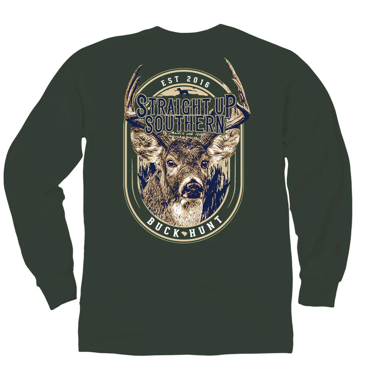 Straight Up Southern Deer Label Long Sleeve T-Shirt