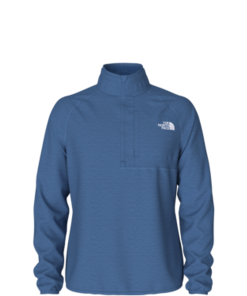 - Exposed, reverse-coil center front half zip with a zipper garage at upper neck